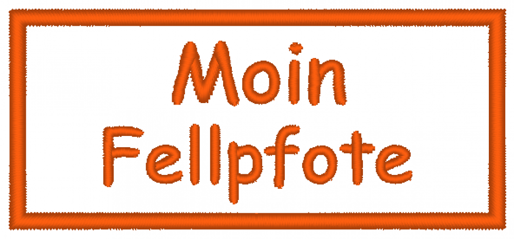 Dieses Stoffschild hat eine Höhe von 50 mm und eine Länge von 130 mm, die Schrifthöhe ist von der Wortlänge abhängig. Es hat auf der Rückseite Klett, die Flauschseite wird z. B. auf Jacken, Brustgeschirre o.ä. genäht und kann je nach Bedarf ausgetauscht oder zum Waschen einfach abgenommen werden.