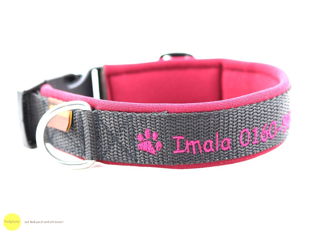 Weich gepolstertes Hundehalsband mit Name und Telefonnummer