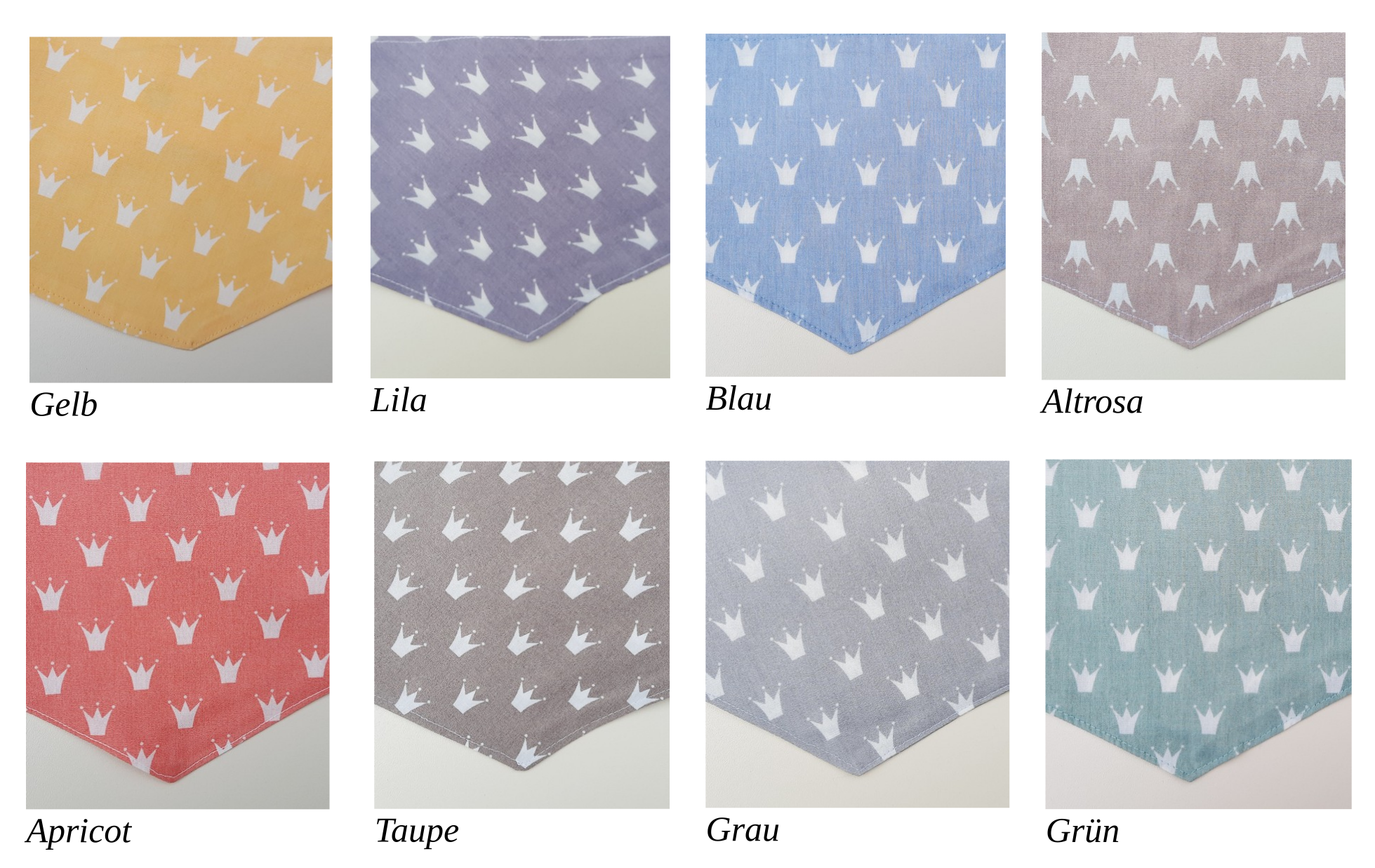 Die Halstücher sind doppelt genäht, Ober- und Unterseite 100 % Baumwolle, mit Druckknopf.