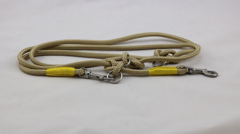 In 100 % Handarbeit fertigen wir Hundeleinen aus Tauwerk. Die Leine ist 3-fach verstellbar und durch die Knoten flexibel einstellbar. Karabiner ist Zinkdruckguss, die Ringe sind aus Edelstahl, Messingbeschläge sind auch möglich. Individuell gestaltet ihr euch eure Lieblingsleine.